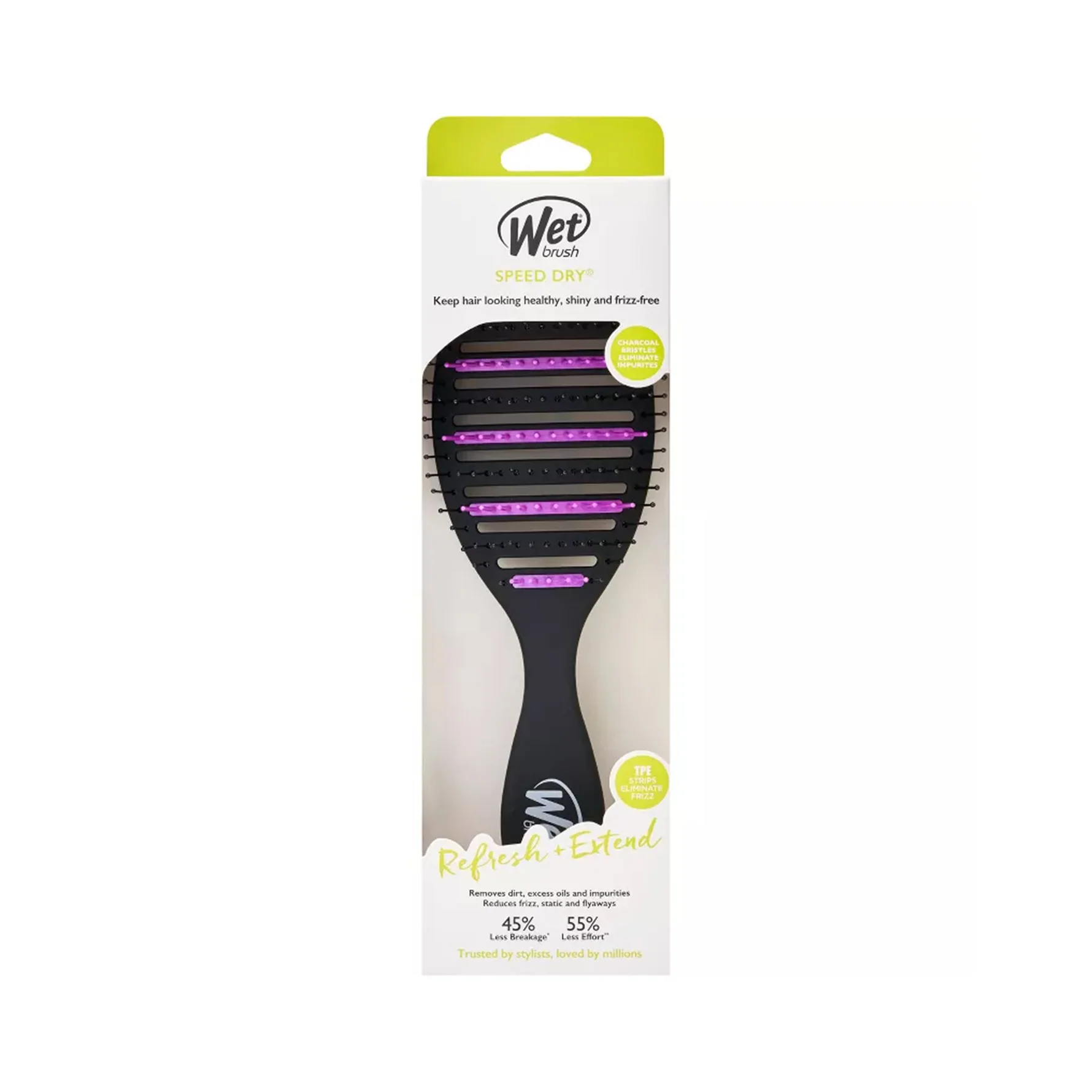 Desenredante con diseño ventilado y cerdas ultrasuaves resistentes al calor HeatFlex seguras para secar mientras el cabello se mantiene fuerte y saludable, además sus cerdas con infusión de carbón eliminan el exceso de aceites.